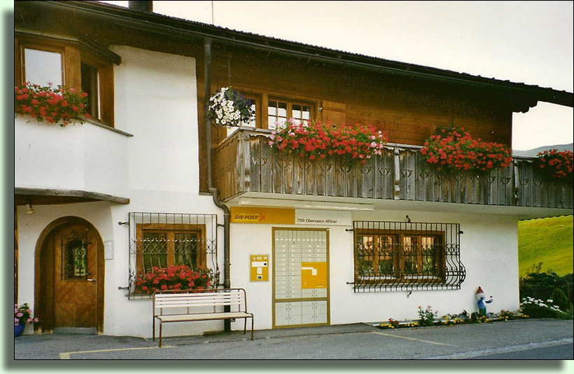 Affeier oder Viver: …Bezirk Glenner, Gemeinde Obersaxen. Weiler am rechten Ufer des Vorderrheins. Postablage. 28 Einwohner, Ackerbau