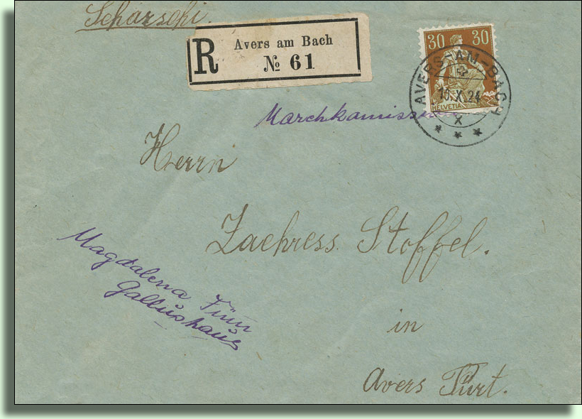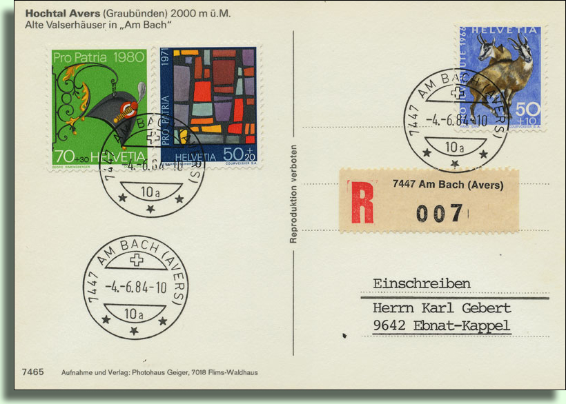R-Kleber mit Formularstempel, erst später waren geduckte R-Kleber verfügbar (aus einer Ricardo-Auktion)