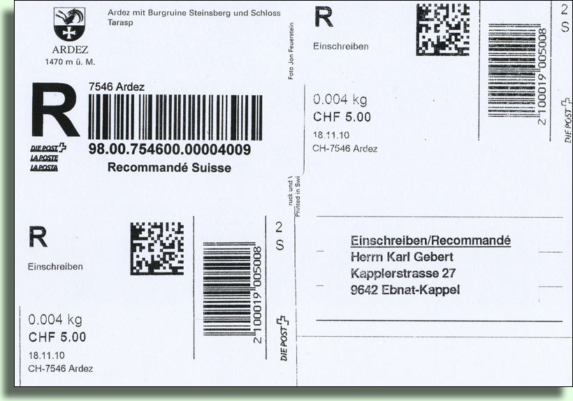 Postagentur Ardez ab 16.10.2010: Tuor 141