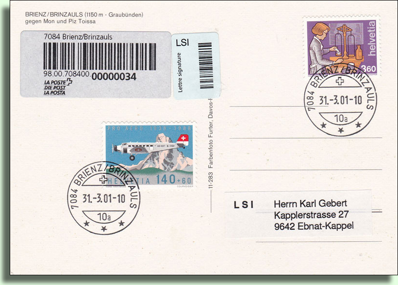 Brienz hatte 1850 191 Einwohner und erhielt eine Postablage.