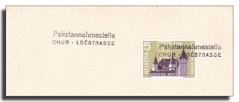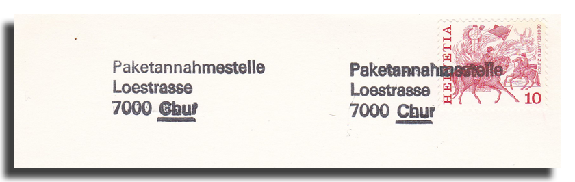 Chur Paketannahmestellen 16.01.1956 – 31.08.1961 01.03.1958 – 27.02.1965 Version 1 Version 2 12.04.1965 – 31.12.1997 01.10.1960 – 06.12.1964 01.12.1963 – 1965 1965 – 16.08.1985