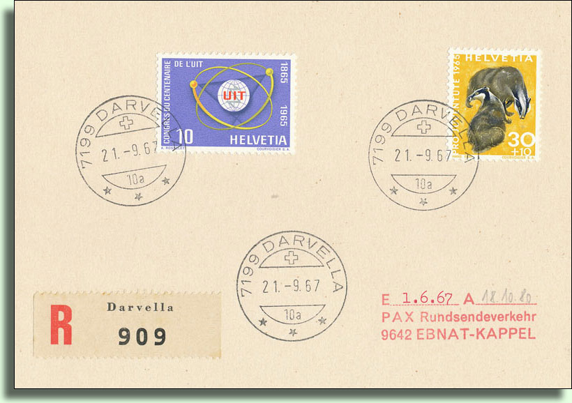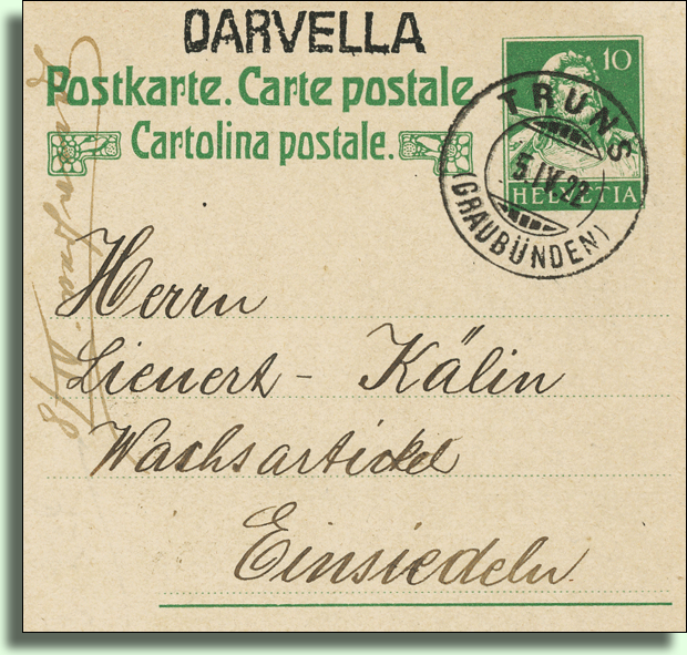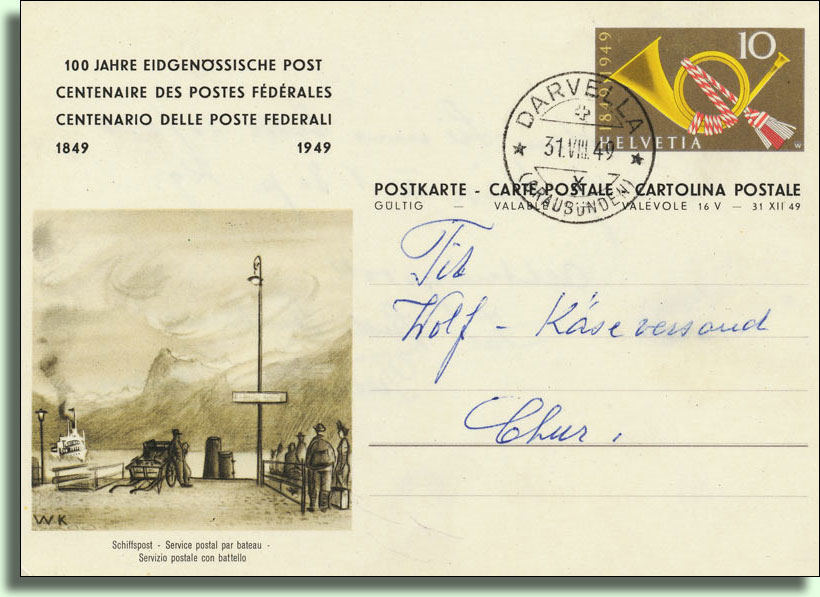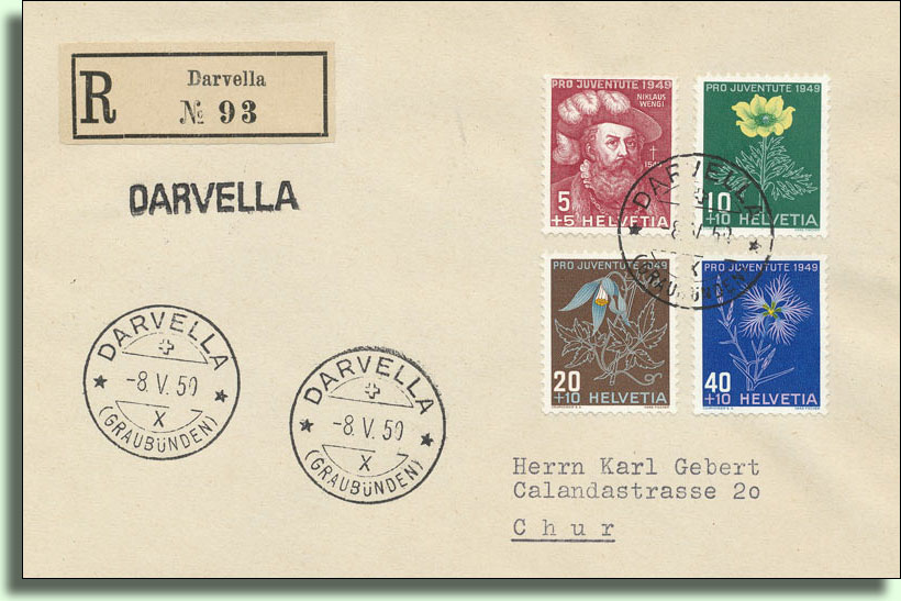 Darvella: …kleines Dorf , an der Strasse Ilanz – Disentis, am linken Ufer des Rheins, Postablage, Postwagen über die Oberalp, 19 Häuser, 133 katholische Einwohner romanischer Zunge, Wiesenbau und Viehzucht