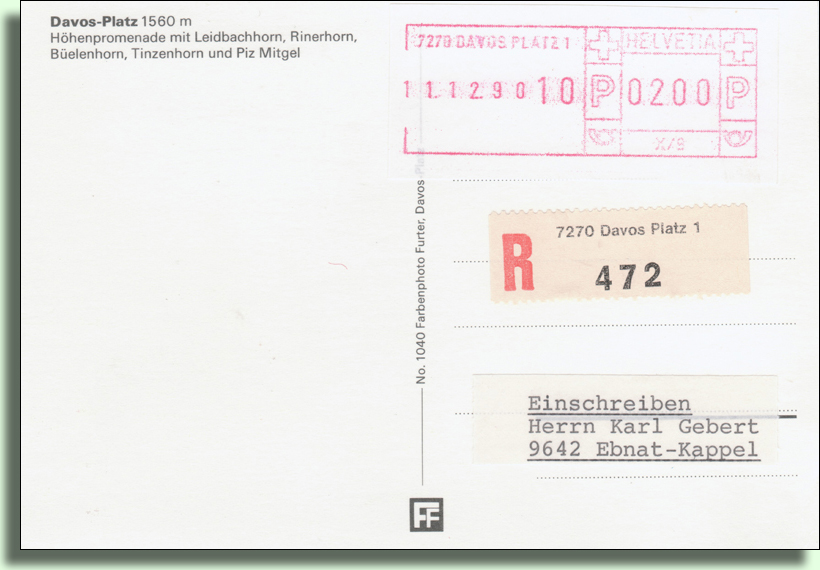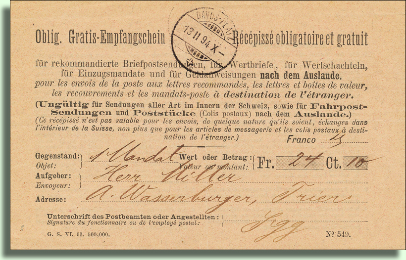 Diesmal war das Personal in Untervaz aufmerksam (Der Stempel ist auf der Rückseite.)