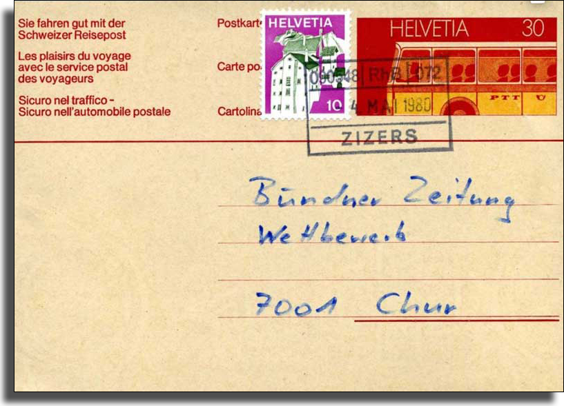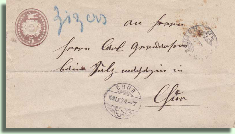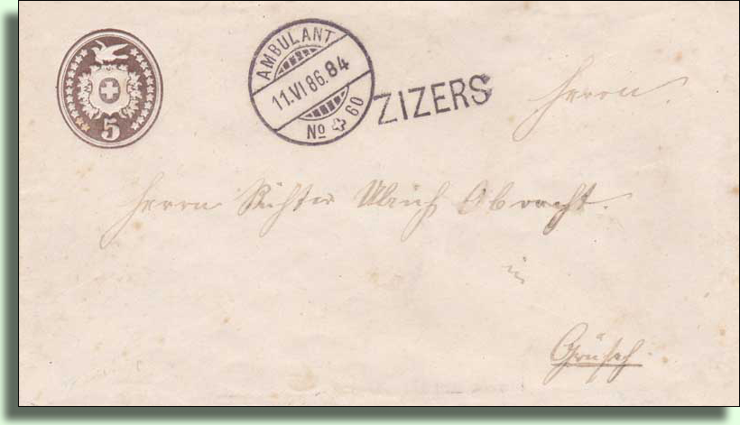 1884: von Zizers nach Landquart und von dort mit dem Postboten nach Grüsch