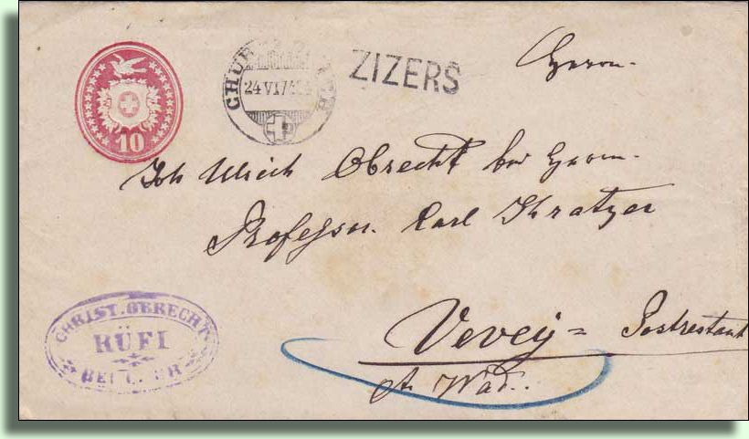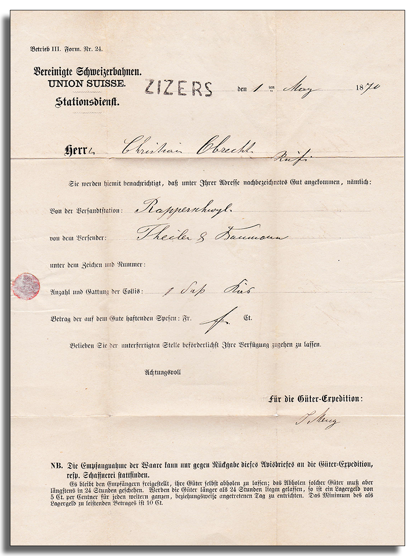 1874: von Zizers nach Chur, handschriftlicher Einladevermerk