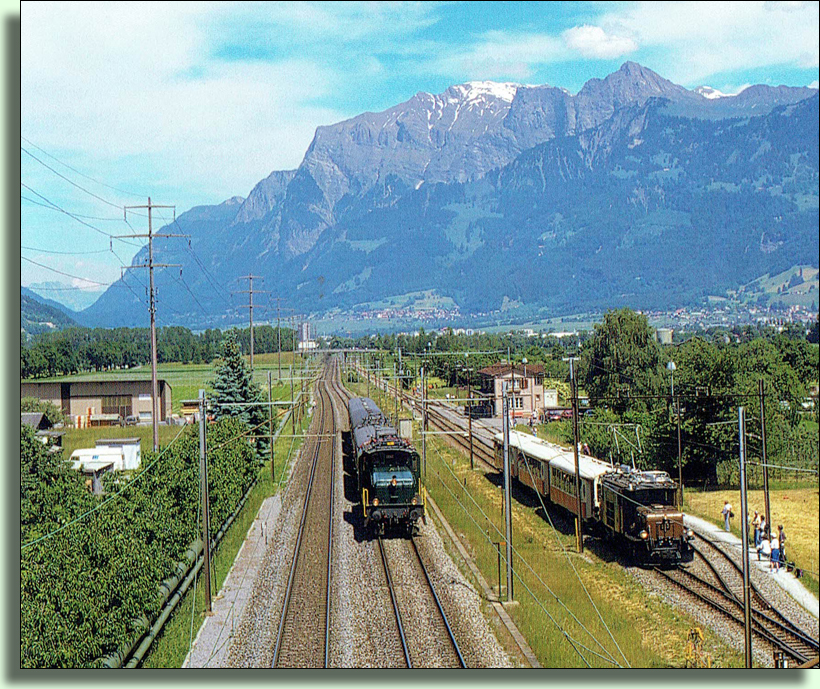 Ein seltenes Bild: Zwei Krokodilloks begegnen sich beim RhB-Bahnhof Zizers. Links die SBB-Lok, rechts diejenige der RhB.