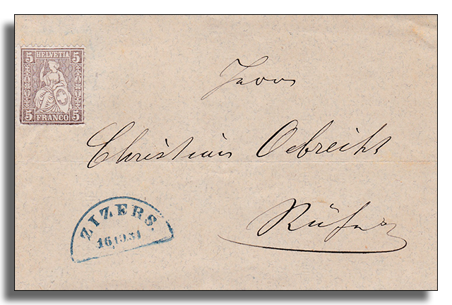 Avisbrief mit blauem Halbkreisstempel
