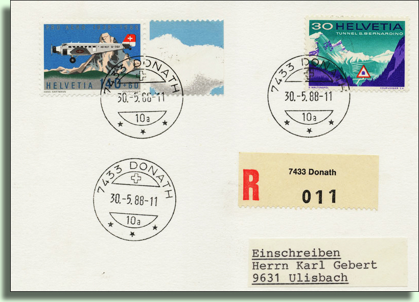Absenderstempel: Kreis Vormundschaftsbehörde Schams Ct. Graubünden, amtliche Nachnahme, musste mit 10 Rp. frankiert werden.