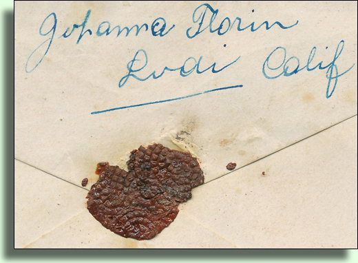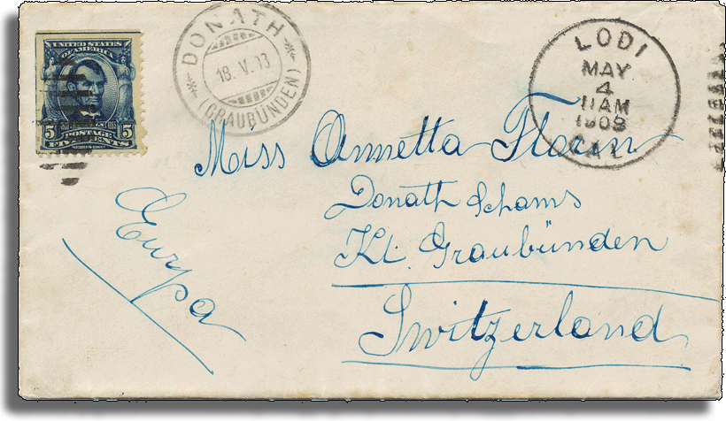 Brief von Johanna Florin aus Lodi (Calif.) an ihre Mutter Annetta Florin in Donath. Der Brief war nur 14 Tage unterwegs.