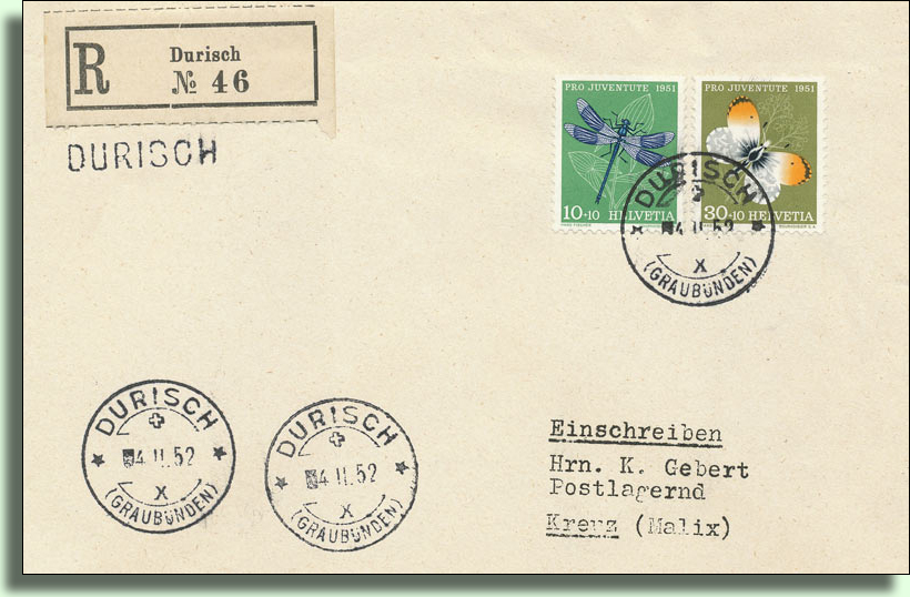 Turisch oder Durisch: … 1345 m, Gruppe von 5 Häusern am Nordhang des Piz Riein, Postablage, 28 reformierte Einwohner deutscher Zunge, Wiesenbau und Viehzucht