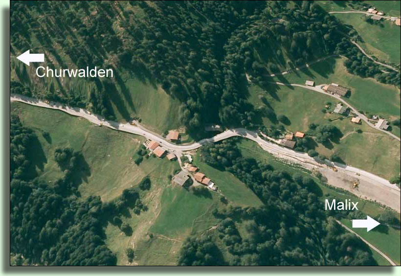 Egga: …1173 m, Gruppe von 4 Häusern an der Strasse Chur – Lenzerheide, 1,2 km südlich von Malix, 27 reformierte Einwohner