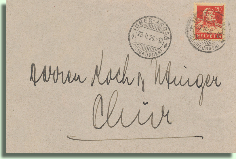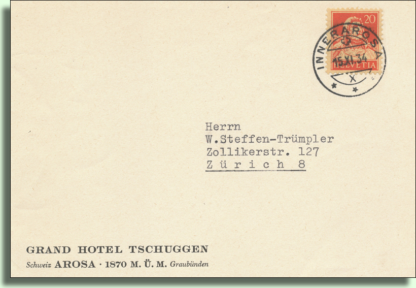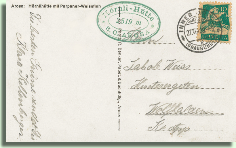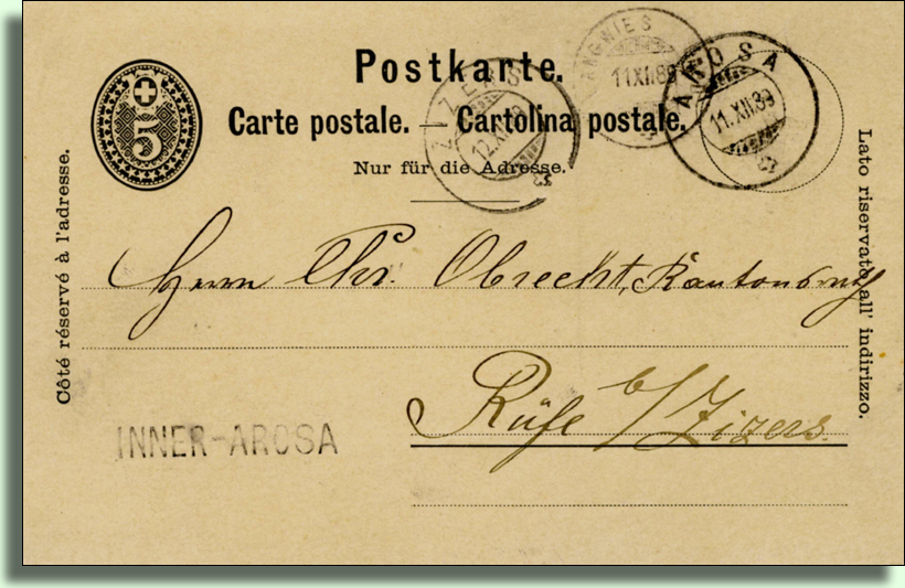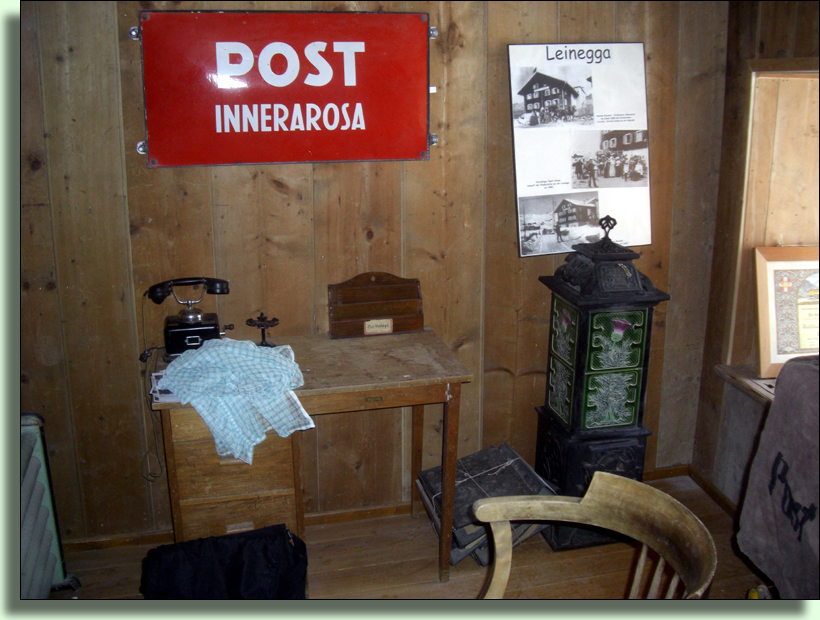 Die Pension Brunold (Haus Leinegga) beherbergt ab dem 01.09.1889 die Poststelle INNERAROSA und ab 1890 wird sie Endstation des Postkurses von Chur nach Arosa. Luzi Brunold wird Posthalter und das Postbüro ist im Erdgeschoss der Leinegga in einem getäfelten Zimmer eingerichtet.
